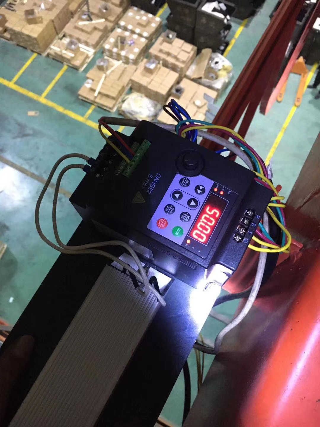 3、變頻器調(diào)試參數(shù) P4.05=0 P4.01=2(接線端口D12功能選擇為反轉(zhuǎn)) P0.02=1(運行指令通道) P9.03=0(過壓速度增益) P9.04=120(失速保護電壓) P0.17=3(加速時間) P0.18=3(減速時間) P1.05=1380(電機額定轉(zhuǎn)速) | 4、現(xiàn)場圖片