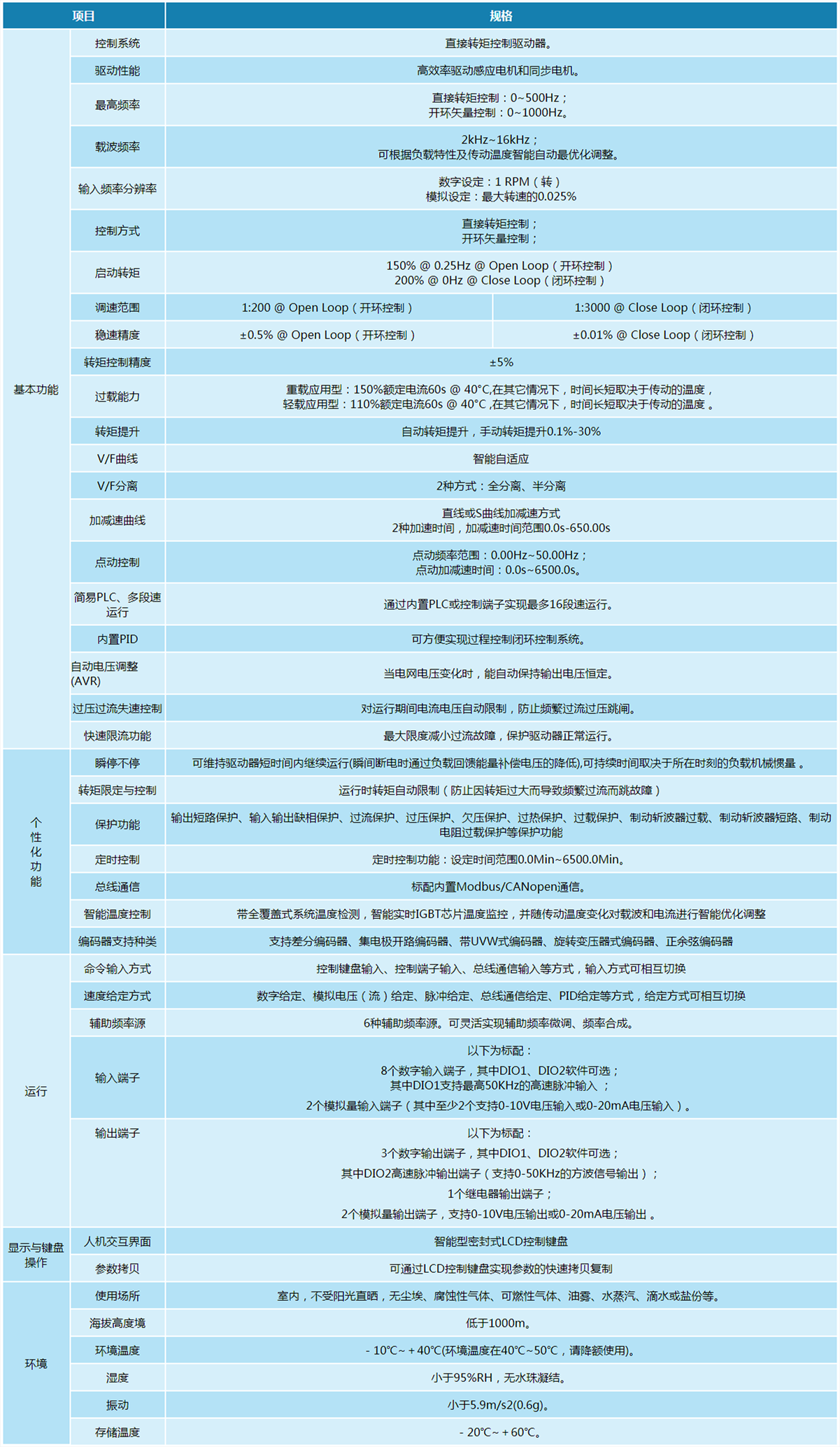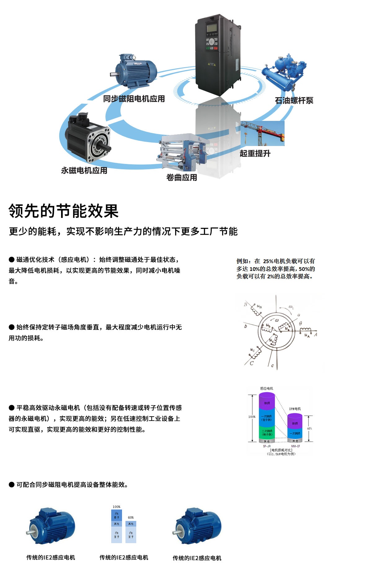 產(chǎn)品特點(diǎn) | ● 具有轉(zhuǎn)矩響應(yīng)快、控制結(jié)構(gòu)簡(jiǎn)單、易于實(shí)現(xiàn)全數(shù)字化; ● 優(yōu)異的開環(huán)轉(zhuǎn)矩、速度控制、實(shí)現(xiàn)性能等同于帶編碼器的閉環(huán)控制; ● 實(shí)時(shí)準(zhǔn)確磁通跟隨與優(yōu)化,實(shí)現(xiàn)電機(jī)時(shí)刻處于高效節(jié)能運(yùn)行; ● 領(lǐng)先的弱磁控制技術(shù); ● 功能豐富,操作簡(jiǎn)單。 |